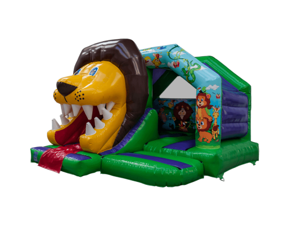Brand new for 2024 is our amazing 3D Inflatable range this one features our 3D Jungle Bouncy castle with Lion Slide it really is Jaw dropping! This inflatable really is something different, the colour scheme and artwork goes hand in hand and really does make this inflatable stand out, with the option to add a music speaker at the back if you so wish. This Lion bouncy castle and slide really is universally suitable and will be loved by everyone no child will find this lion intimidating. Our 3D bouncy castle range has proven to be a big hit with the kids and adults in Cumbria and has been of of our most popular inflatables as it stands out and makes a great focal point, why not upgrade your party and add on our jungle play park and soft play by clicking here.