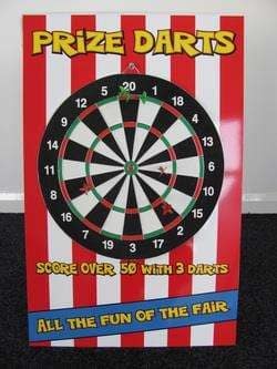 Prize Darts side stall game Eye catching side stall game with A frame support board. Traditional all the fun at the fair games suitable for all events, fetes, schools, home events, fund raising, corporate, community events, parties.... Great fun for all ages 3+