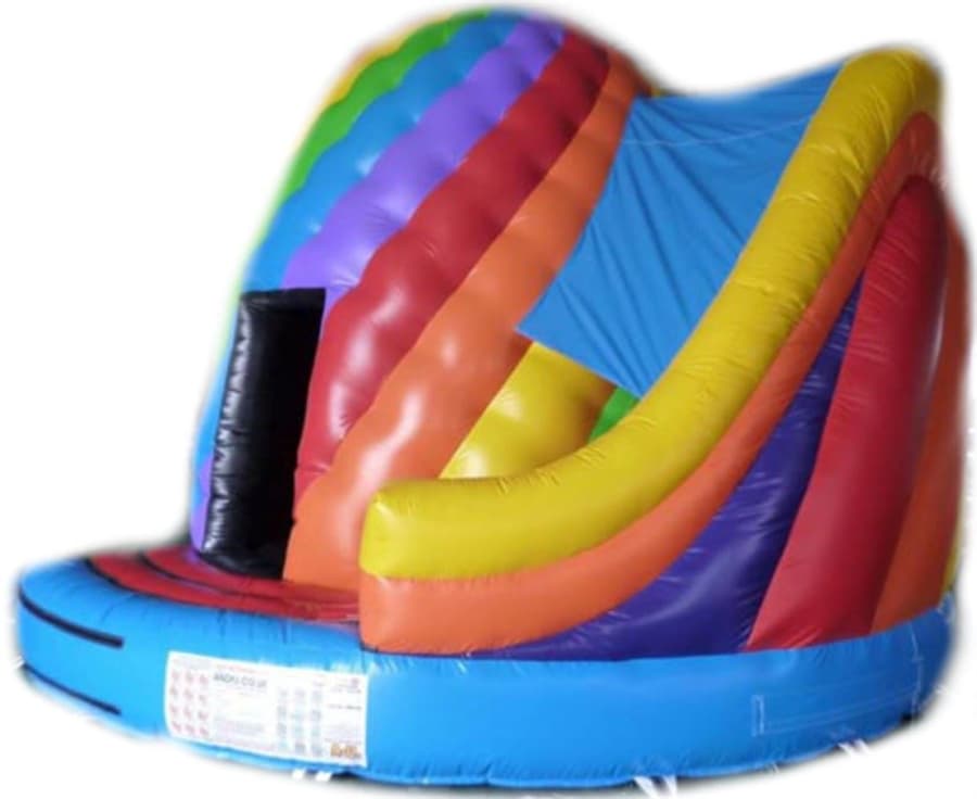The colour scheme of this inflatable has been carefully thought out with bright colourful material decorating the outside of the product with Yellow, Red, pink and nearly every colour in the rainbow. The inside of the product including the bouncing area is mostly black so that users get a greater effect from the disco light housed at the top of the disco dome. The slipsheet of the internal slide however isred rather than black so that it does not get too hot in direct sunlight.