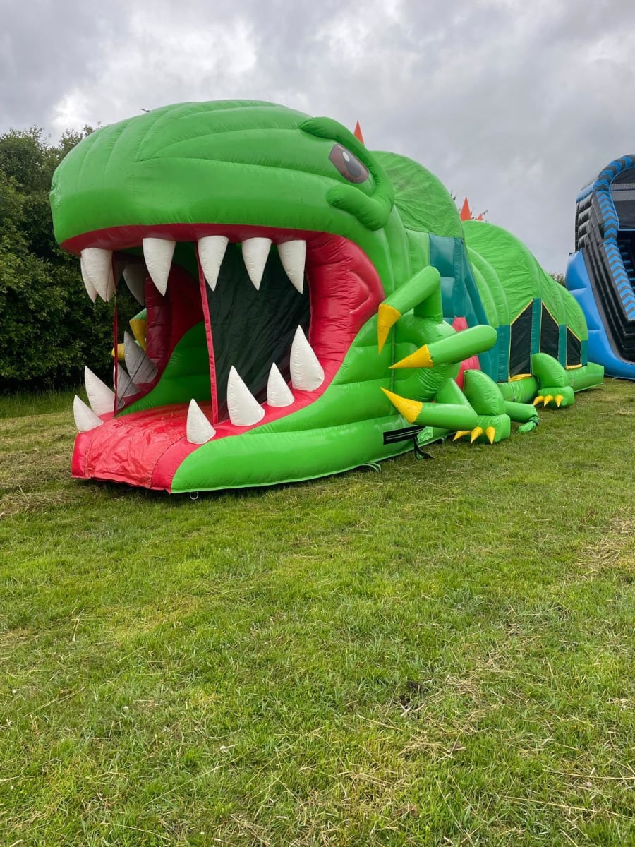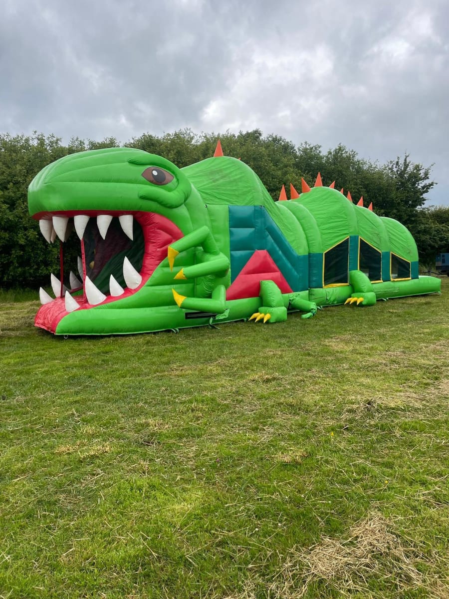 🦖 Step back in time with our exciting new arrival - the Dinosaur Assault Course! 🦕 Measuring a whopping 60ft long and over 243 million years old, this 3D inflatable course is Cumbria's first of its kind, designed to entertain both children and big kids alike. With its eye-catching design and striking colour scheme, you won't miss this inflatable from afar!