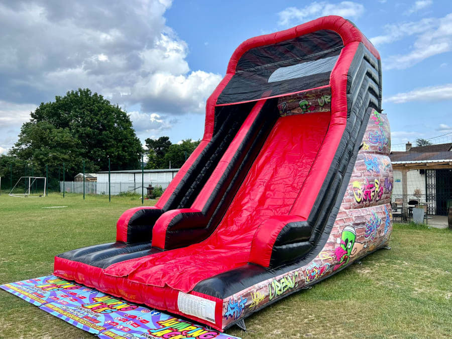Reserve the Graffiti inflatable slide bouncy slide today to secure your date. Fast delivery and professional setup across Carlisle, Brampton, Hexham, Penrith and nearby towns. Contact us now to check availability, confirm pricing and add generator hire if needed. Bring big fun to your next event with trusted bouncy castle hire and inflatable slide hire.