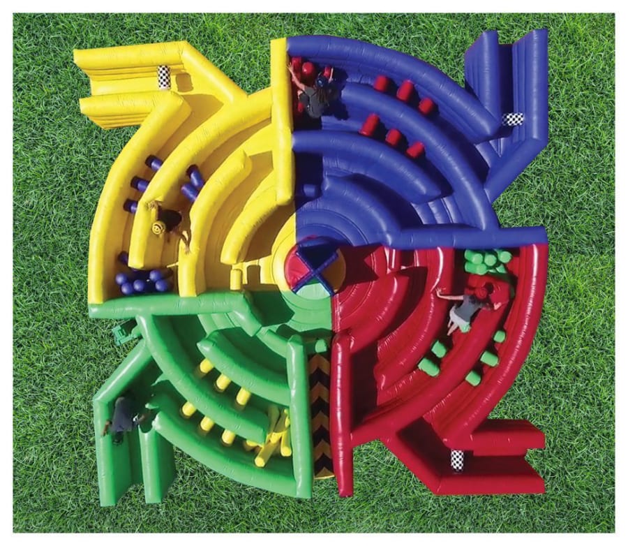 Get everyone laughing and competing with Dizzy X Game. Four players take a colored sector on a multi-coloured carousel, get spun until dizzy, then race to the end of their color. Fast, fair and family-friendly — perfect for fun days, sports days and corporate events.